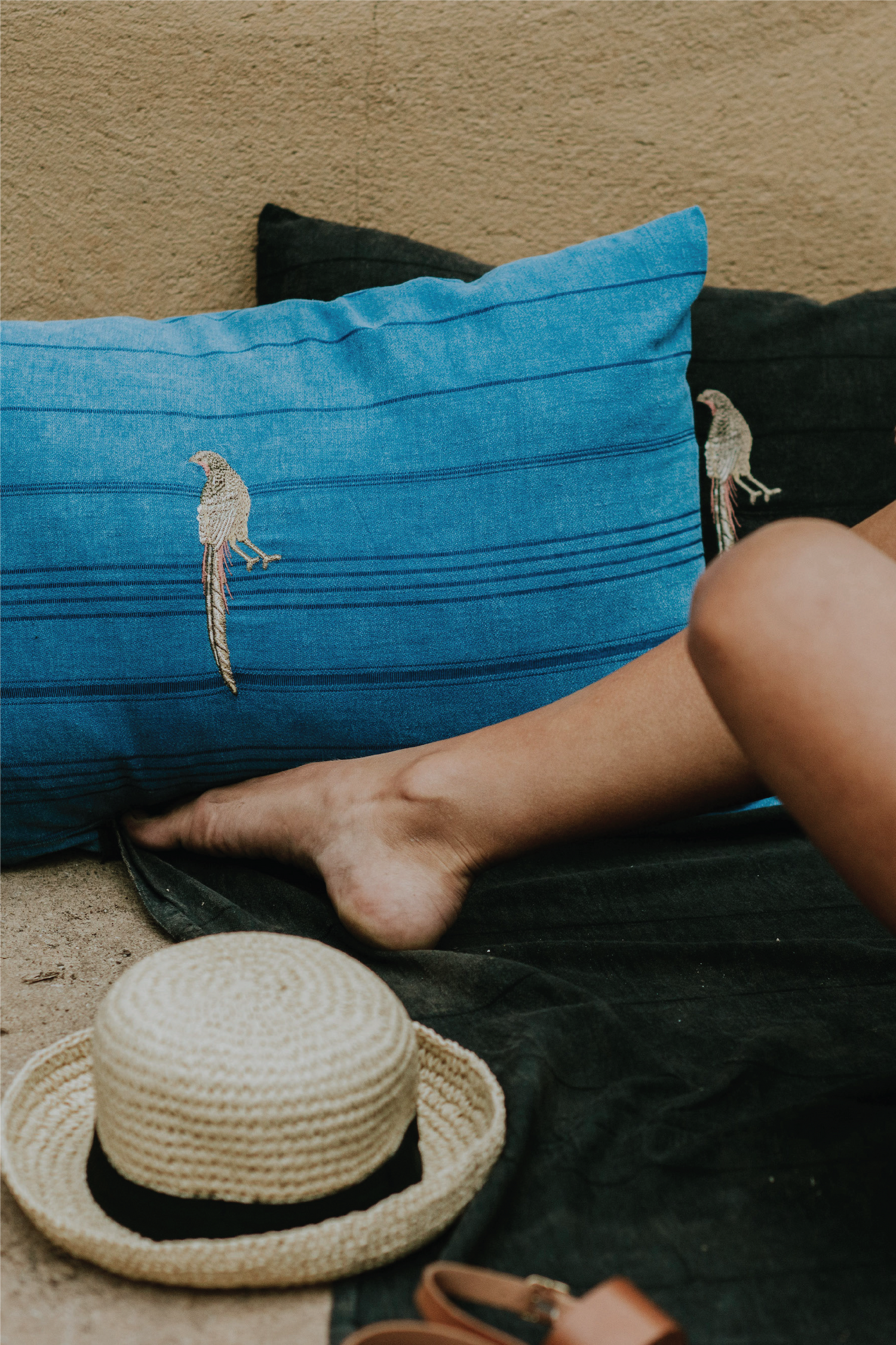 Denim Blue Pillow Case with The Pheasant Embroidery