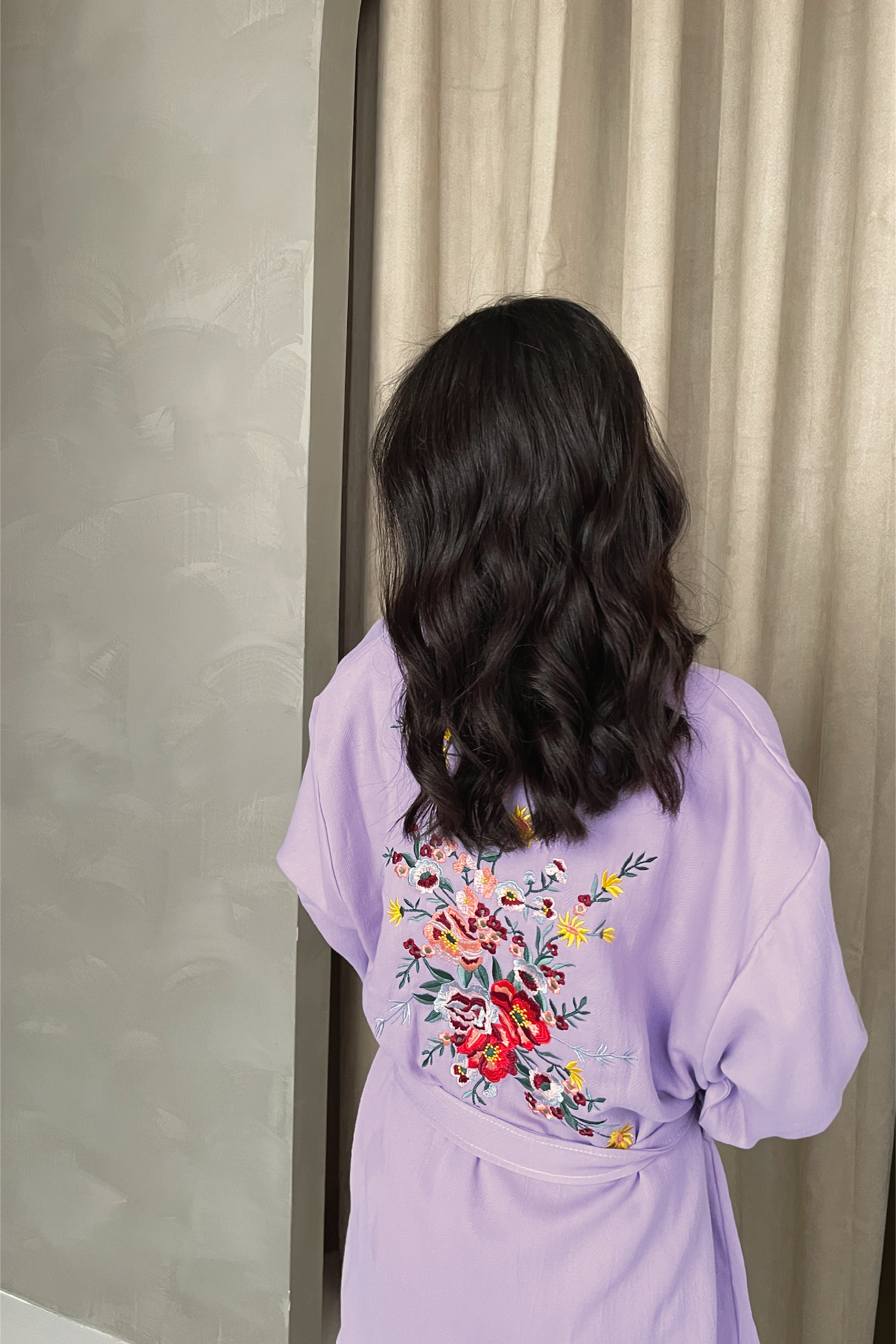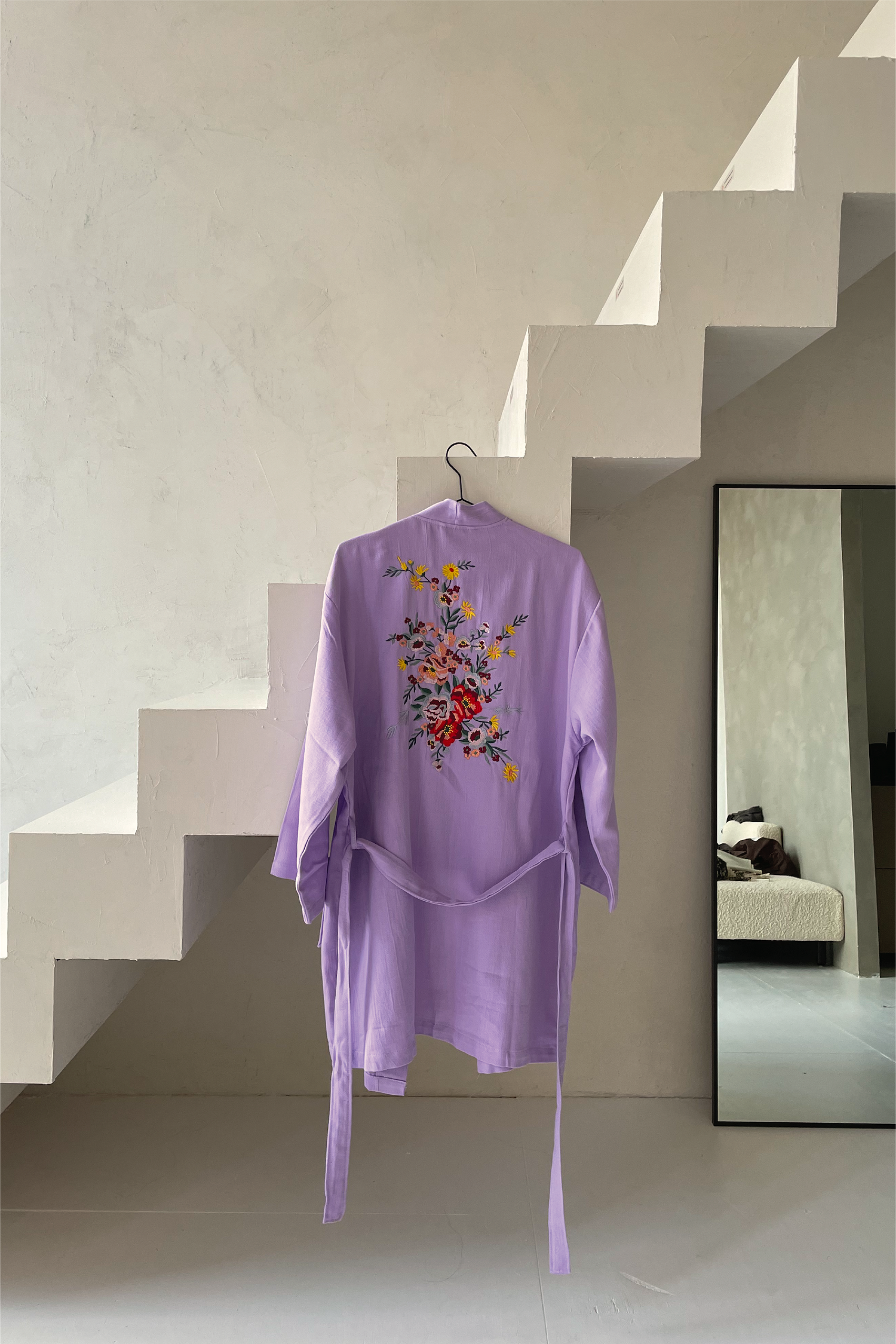 The elegant Flower embroidery design is featured on our 100% cotton kimonos. Wrap yourself in the beauty of nature with this positive energy.
