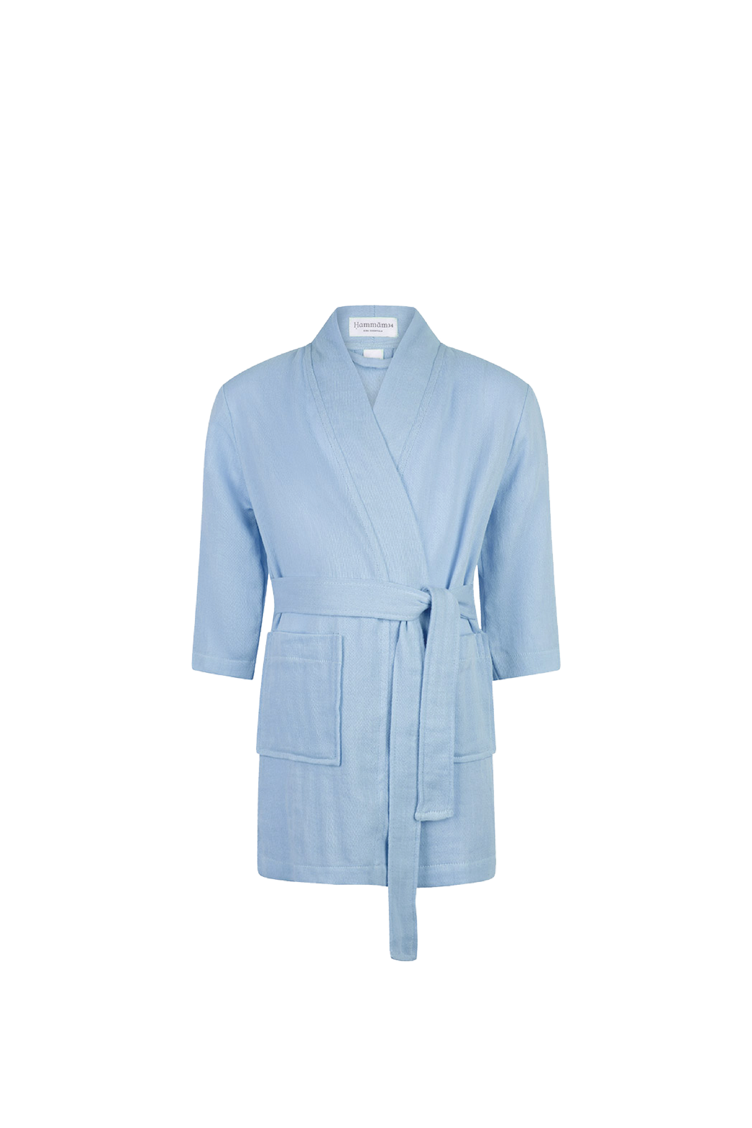 Kids Kimono with long sleeves, pockets and stitched belt. Embroidery at the back.